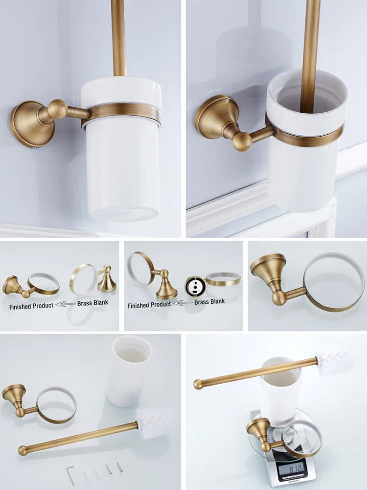 Rüsten Sie Ihr Badezimmer mit diesem modernen Messing-Badezimmerzubehör-Set auf, gefertigt aus hochwertigem Kupfer mit gebürsteter Bronzeoberfläche. Dieses komplette Set wurde für Langlebigkeit und zeitlose Eleganz entworfen und bietet alle wichtigen Armaturen, um Ihren Raum organisiert und stilvoll zu halten.