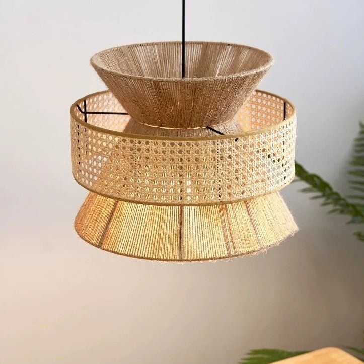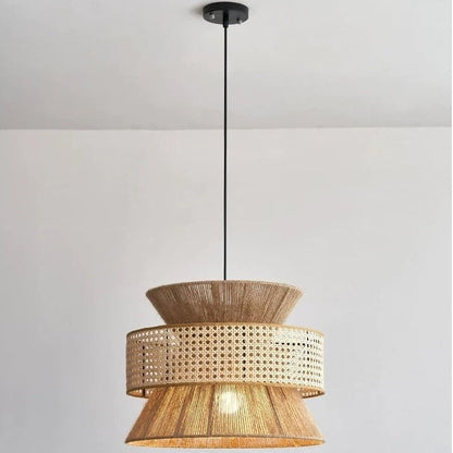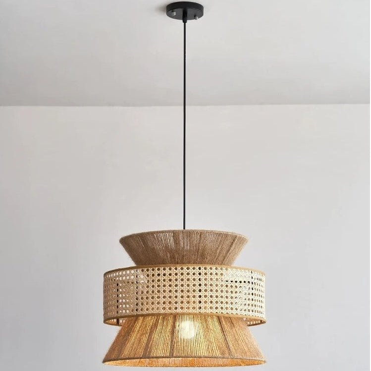 Henneptouw Rotan Hanglamp – Handgeweven 3-Schacht Design