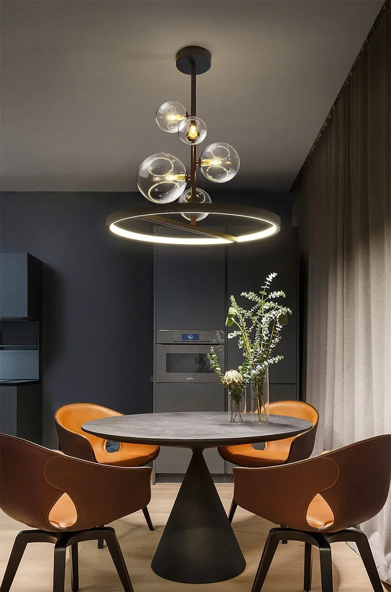 NOSTAGA Glazen Cirkel Hanglamp – Moderne LED Kroonluchter